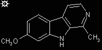 [3D .jpg Image] SYNTHESIS : To solution of 0.5 g harmaline hydrochloride dihydrate in 8 mL ethanol containing 8 mL concentrated HCl there is added a solution of 0.25 mL concentrated HNO3 in 7 mL ethanol. This was heated on the steam bath until an exothermic reaction set in, with considerable bubbling. Heating was continued for 0.5 min, and then the reaction mixture was cooled, producing a crop of fine crystals, which were removed by filtration and washed lightly with ethanol. With air drying, there was thus obtained 0.31 g (67%) harmine hydrochloride monohydrate which was dissolved in 3.1 mL H2O and neutralized with a few drops of concentrated NH4OH. There separated a fine, pale cream solid that was removed by filtration and air dried, to give 0.22 g (89%) harmine base as an off-white powder. MS (in m/z): parent ion 212 (100%); 169 (67%); 197 (24%), IR (in cm-1): 819, 951, 1037, 1110, 1138, 1165. Harmine hydrochloride hydrate, IR (in cm-1): 737, 800, 821, 1021, 1076, 1110, 1138, 1162.